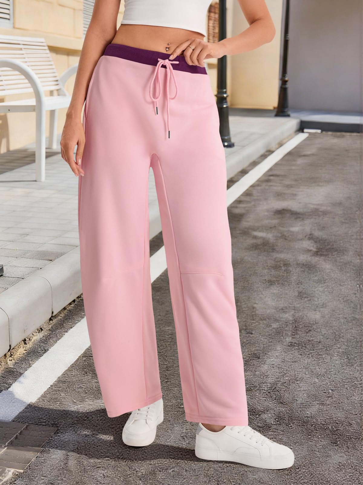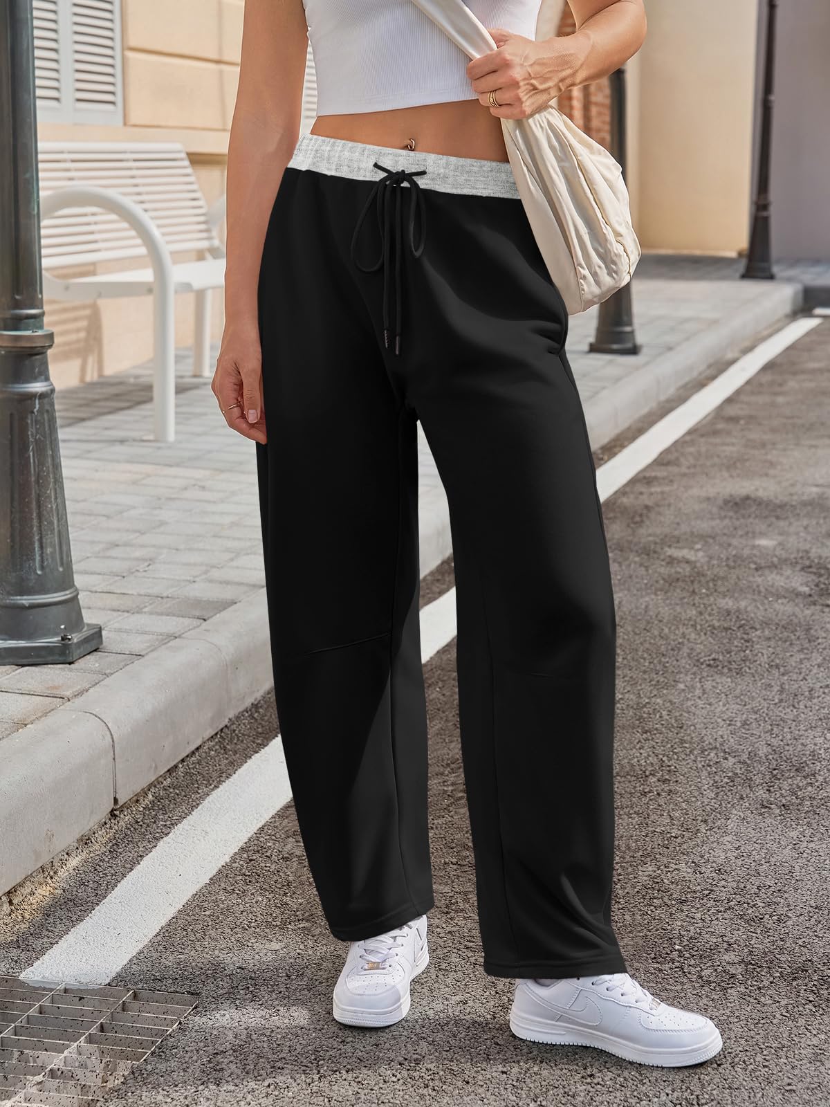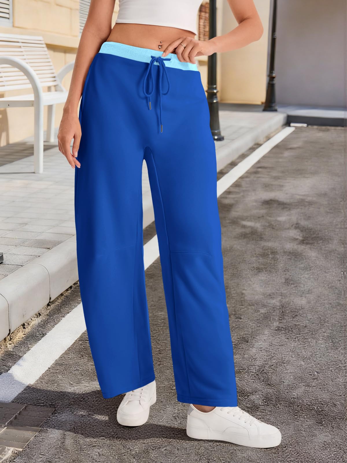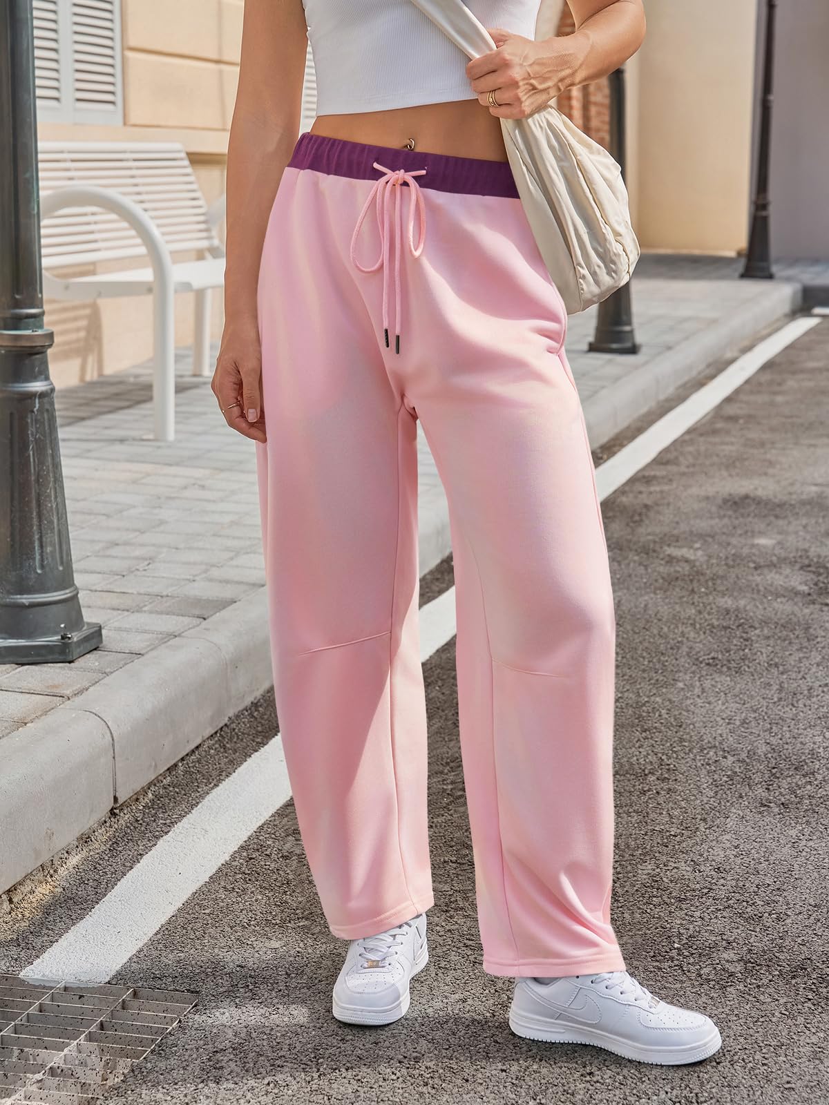 Home > Fisoew Womens Wide Leg Sweatpants Baggy Drawstring Elastic Waisted Travel Track Pants Color Block Joggers With Pockets