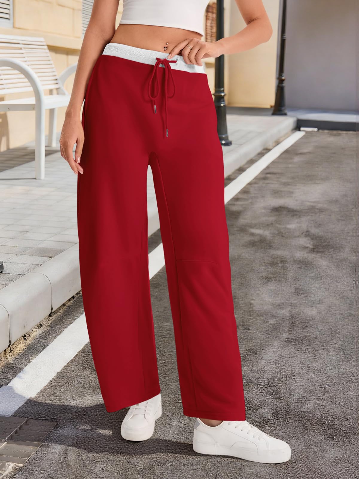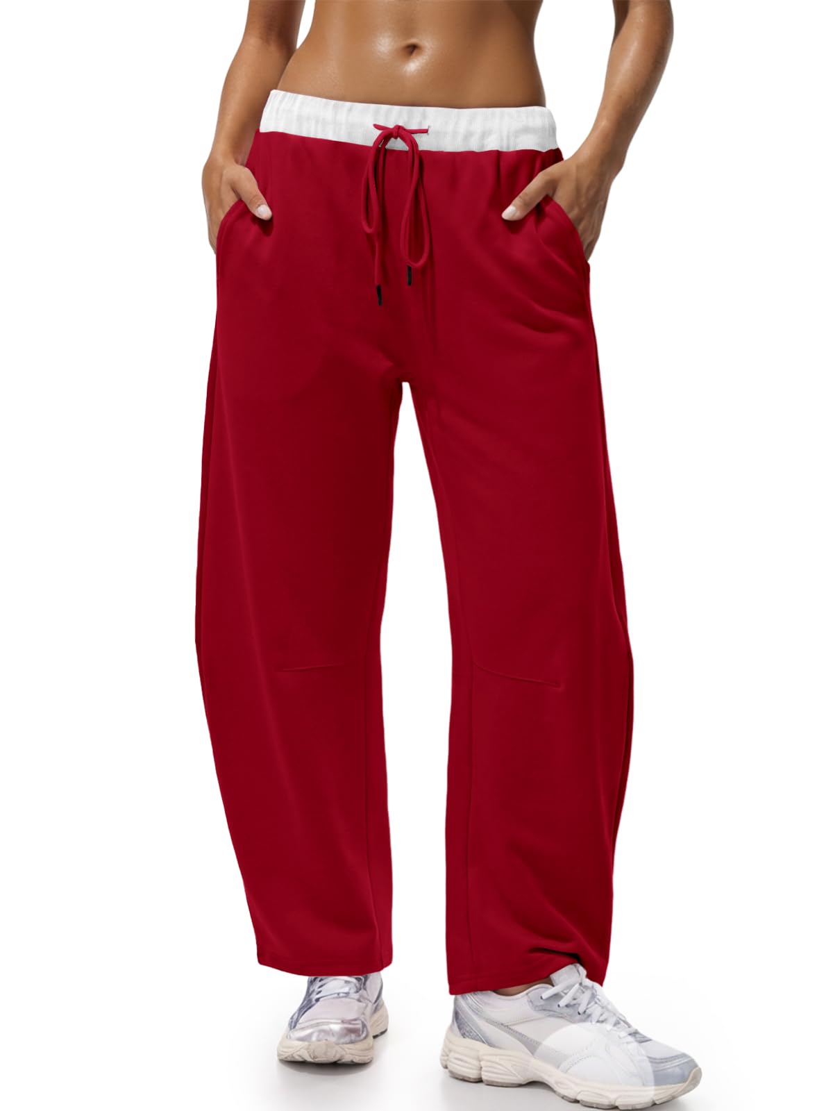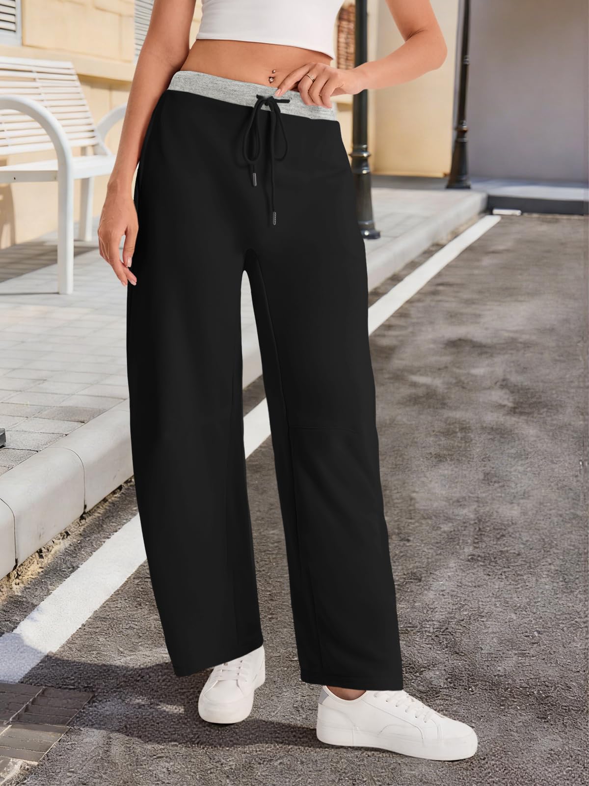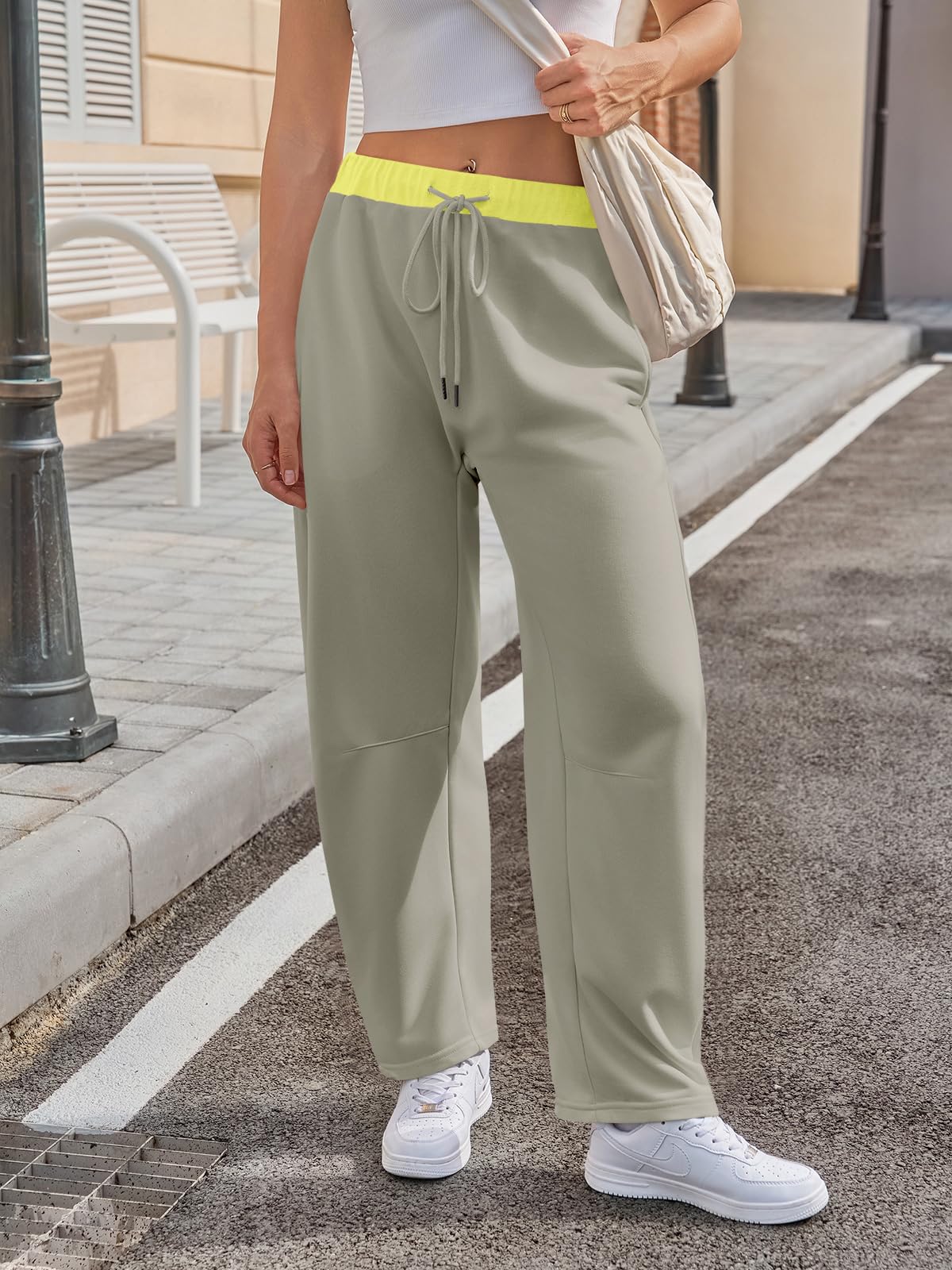Home > Fisoew Womens Wide Leg Sweatpants Baggy Drawstring Elastic Waisted Travel Track Pants Color Block Joggers With Pockets
